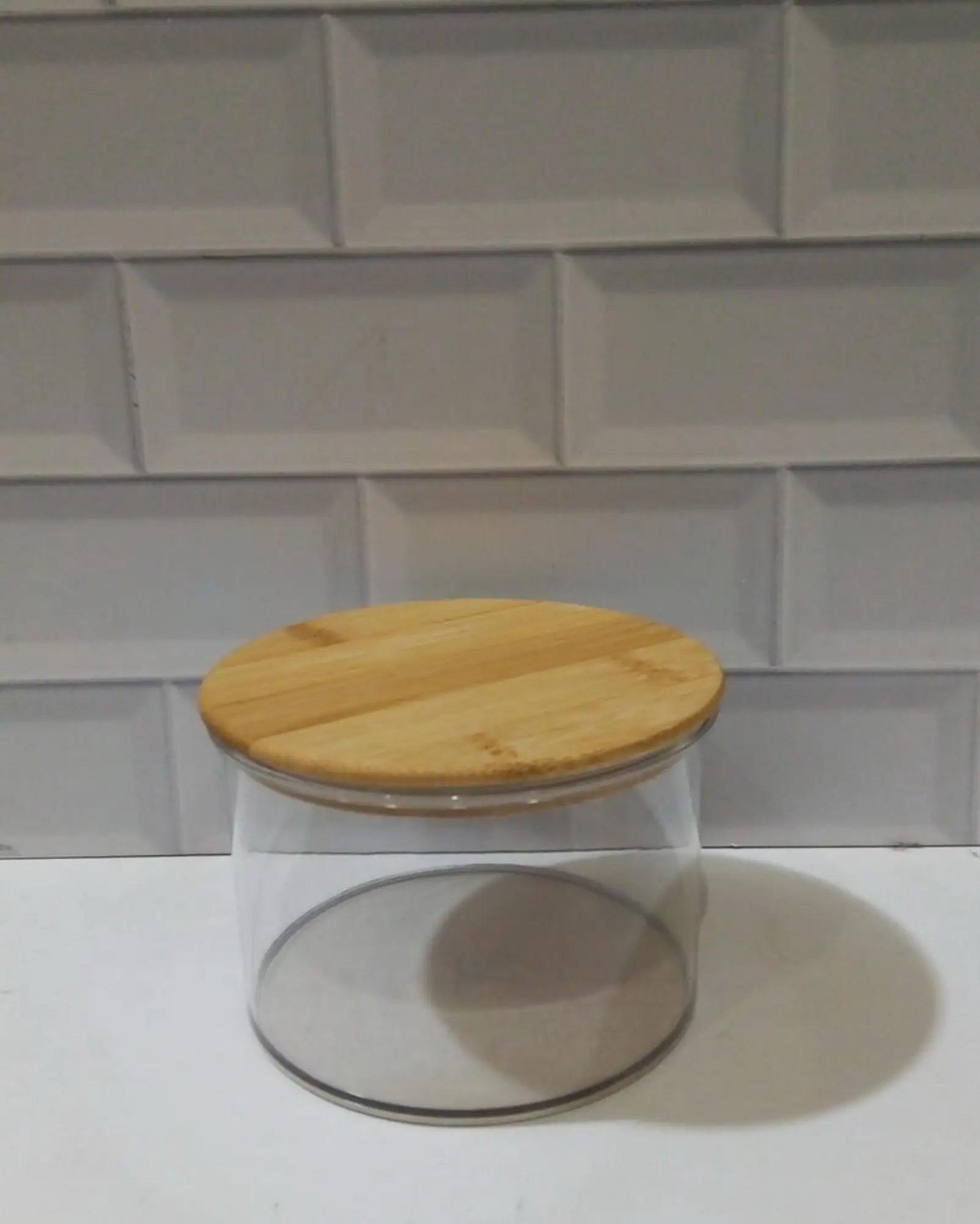 FRASCO REDONDO ACRIL. C/TAPA BAMBU 500ml.