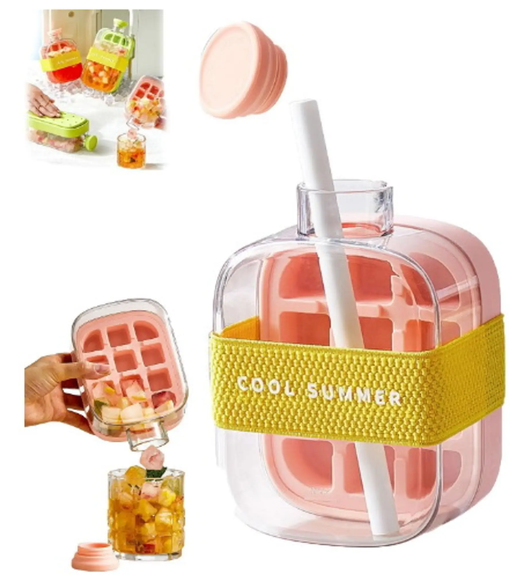 HIELERA SILICONA & BOTELLA C/SORBETE 2EN1 500ml pi