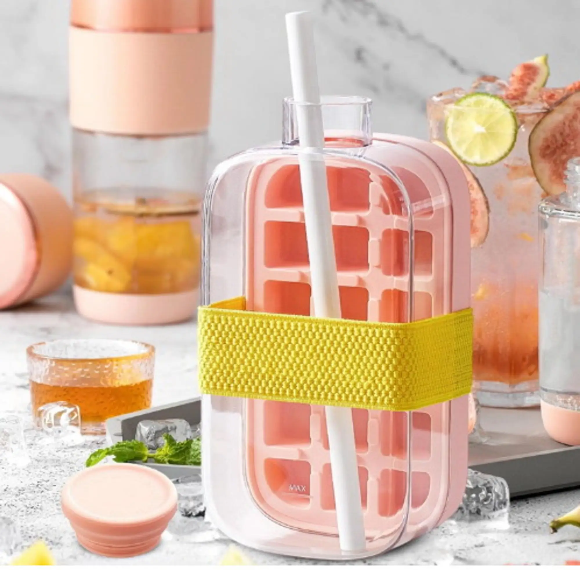 HIELERA SILICONA & BOTELLA C/SORBETE 2EN1 800ml pi