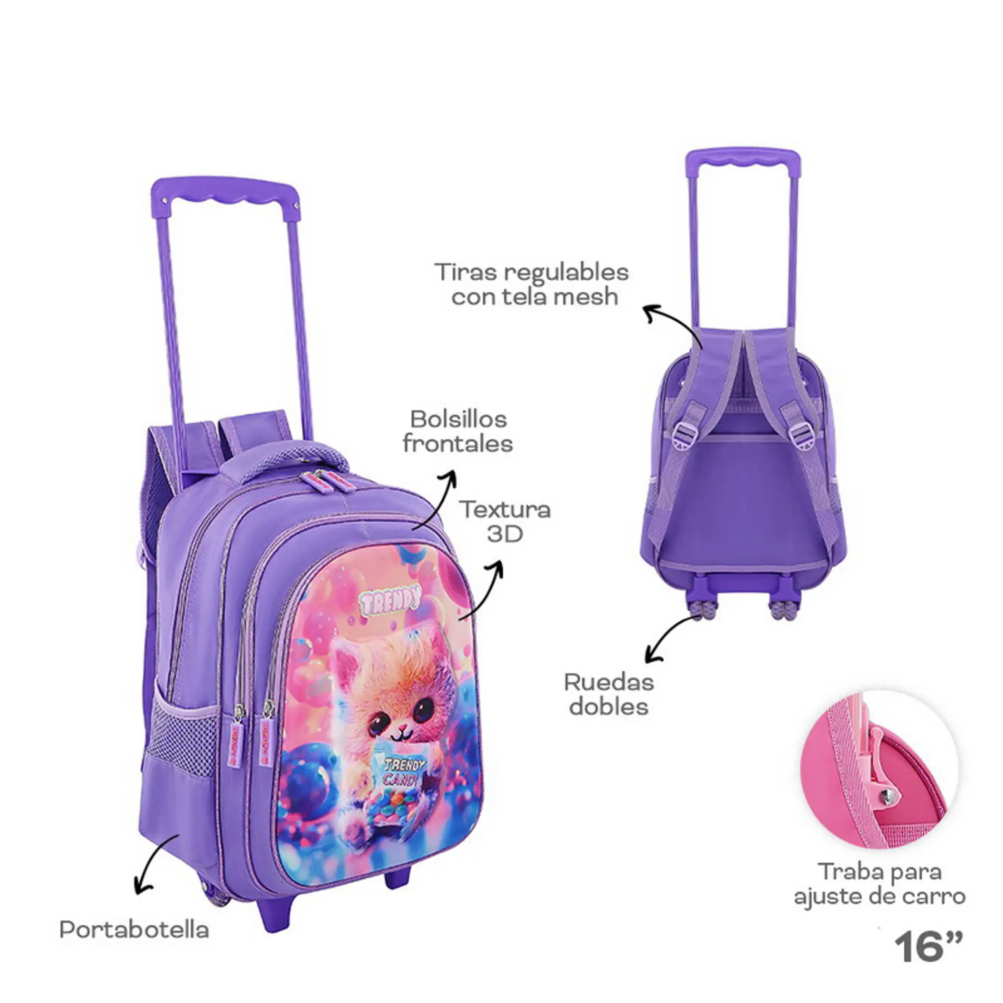 MOCHILA C/CARRO GATITO TRENDY 30092