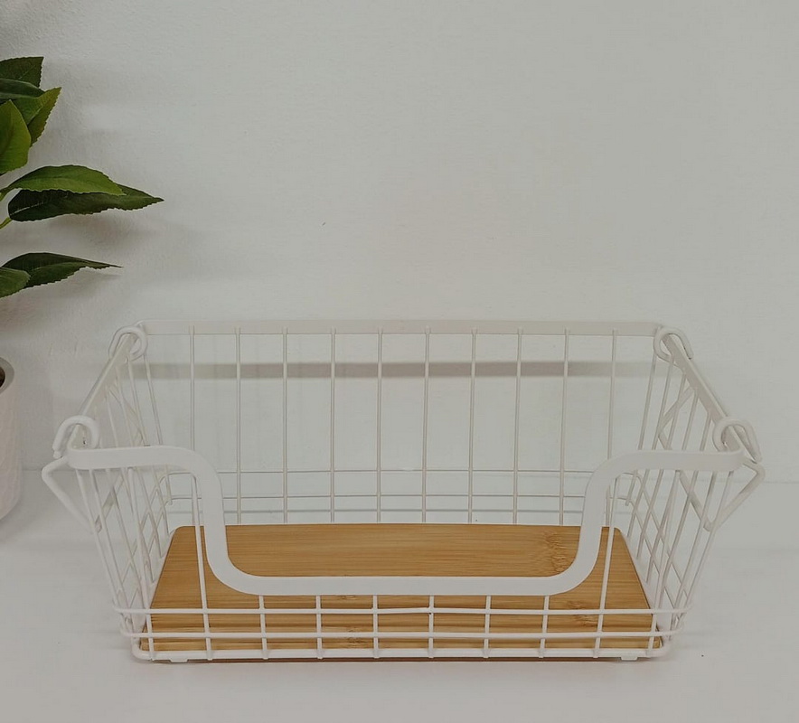 CANASTO ORGANIZADOR METAL & BAMBU WHITE