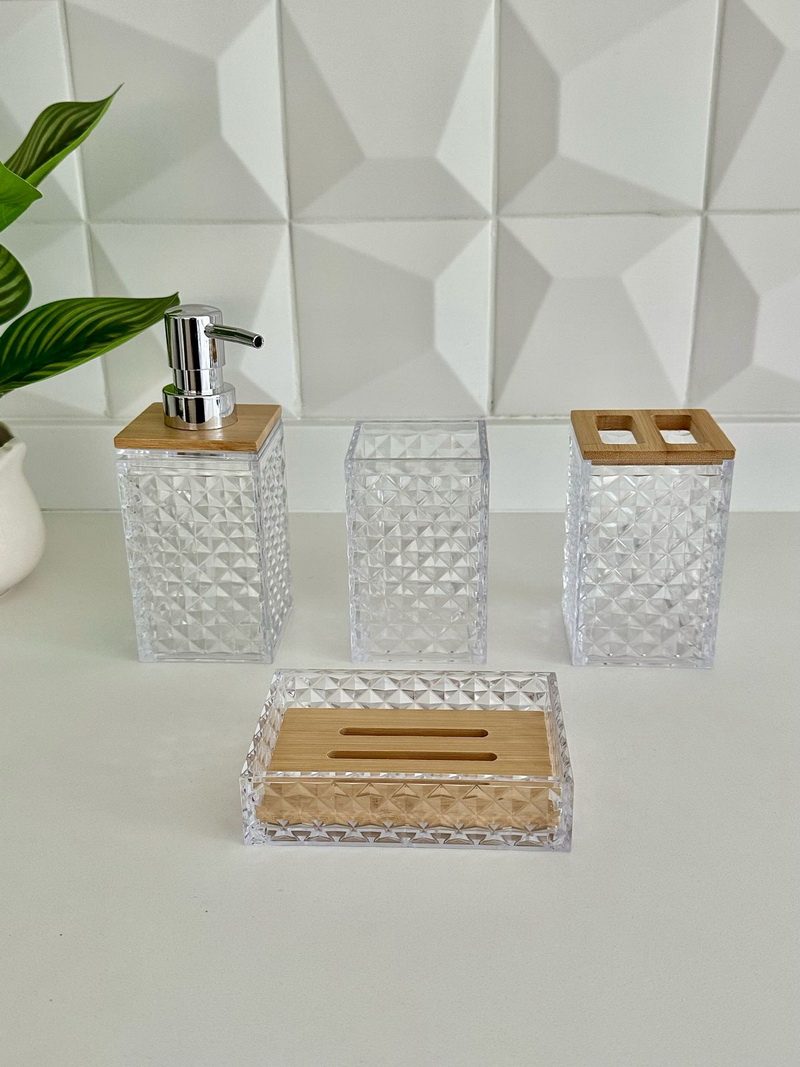 SET DE BAÑO DIAMANTE ACRILICO/BAMBU 4 PCS.